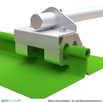 This AceClamp single snow bar system has been specially designed for use primarily on bulb-style standing seam metal roofs. The snow retention kit clamps onto bulb-style SSMR using AceClamp's patented A2®-T non-penetrating, push-pin metal roof clamps. These snow guards provide significant labor savings by reducing installation times, thanks to our pre-assembled clamp-on bracket. Complete your installation with ice-flags to prevent snow from sliding under your bars.