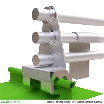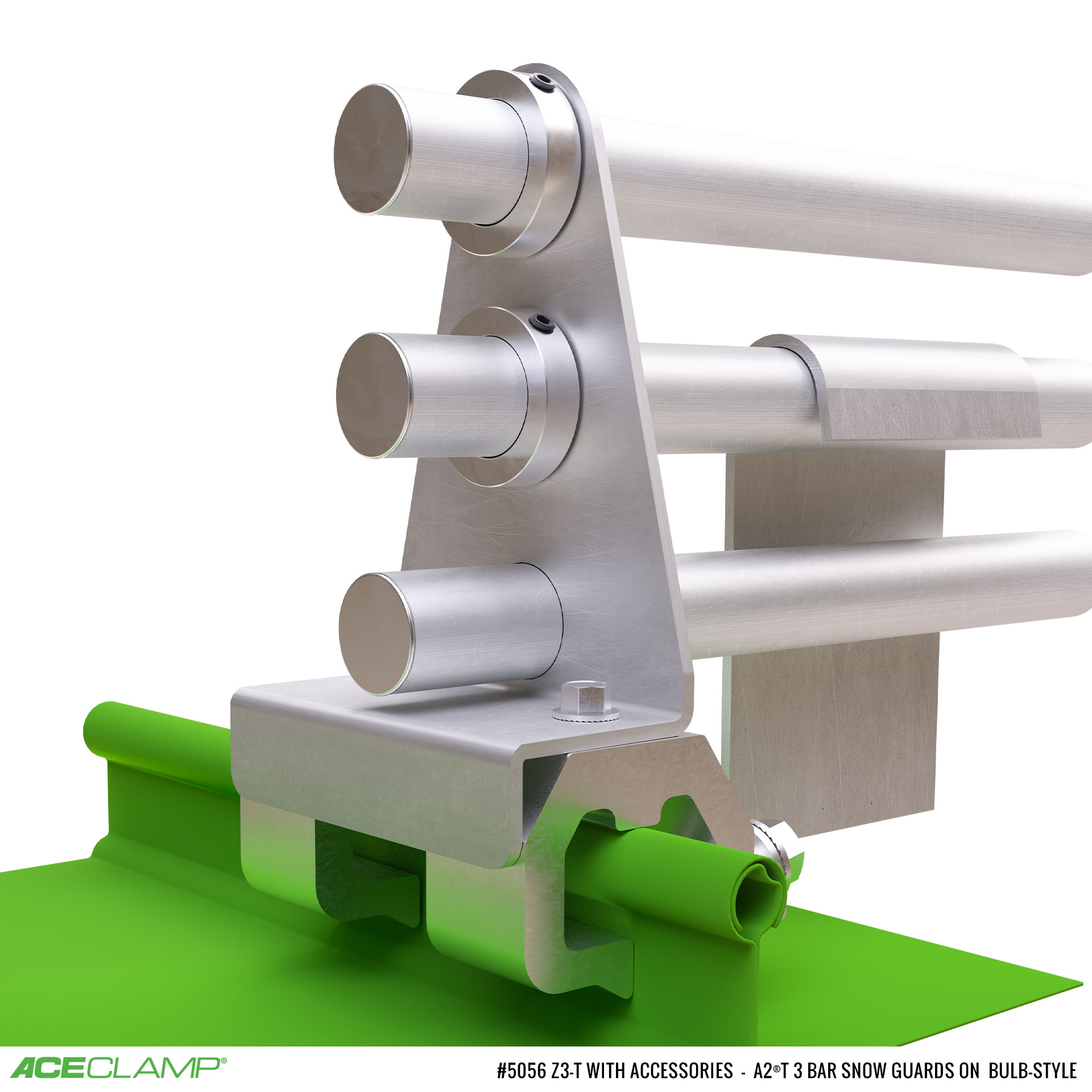 This AceClamp three snow bar system has been specially designed for use primarily on bulb-style standing seam metal roofs. The snow retention kit clamps onto bulb-style SSMR using AceClamp's patented A2®-T non-penetrating, push-pin metal roof clamps. These snow guards provide significant labor savings by reducing installation times, thanks to our pre-assembled clamp-on bracket. Complete your installation with ice-flags to prevent snow from sliding under your bars.